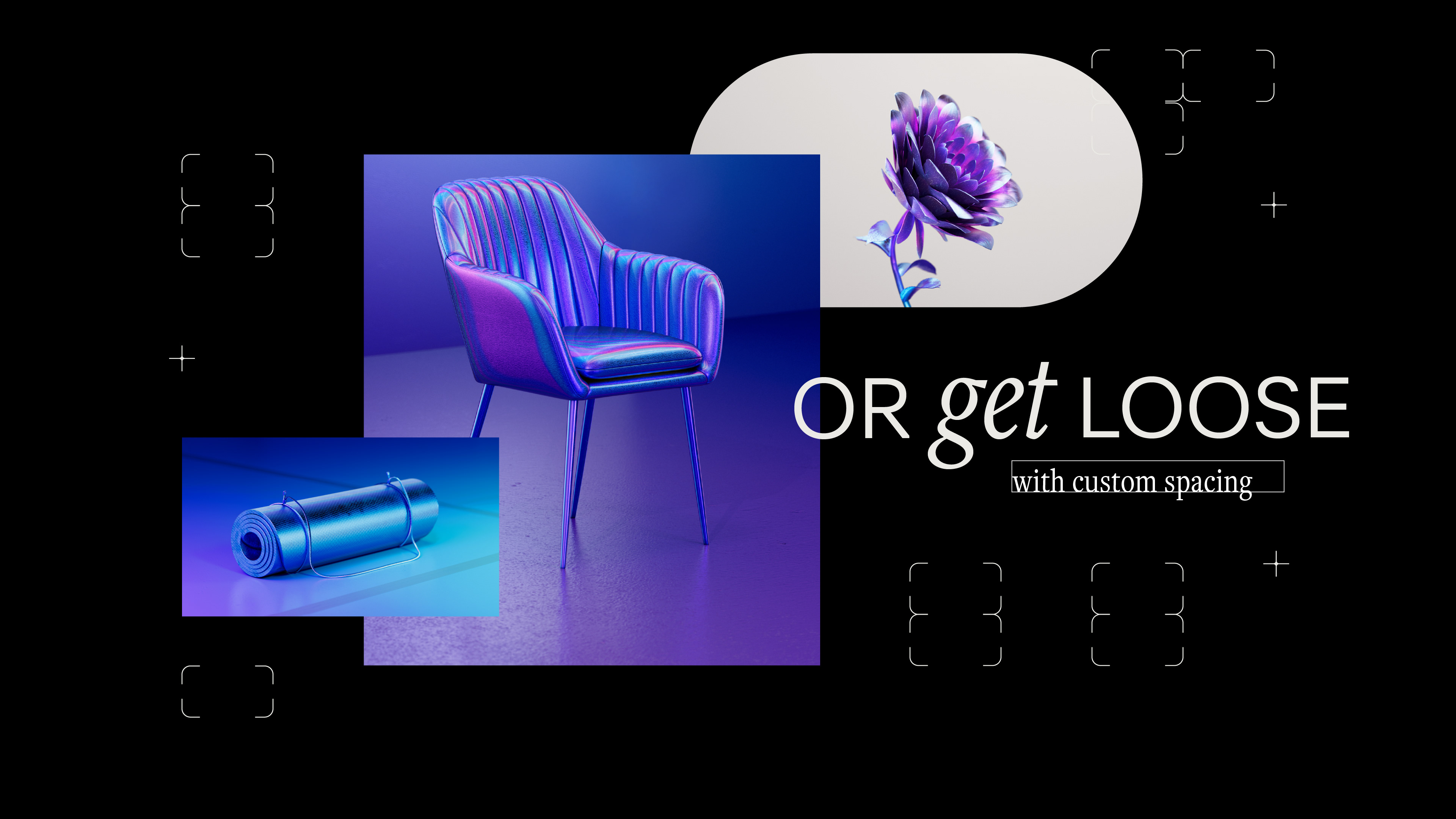 These Fluid Engine world moments are represented graphically with black background scenes where we see the same elements from the websites become iridescent and dreamy. These scenes represent the work that happens behind building a website: we show the ideas being built, the technical side, the planning; the behind-the-scenes.